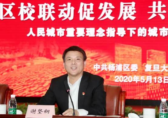 谢坚钢指出,要共同把人民城市重要理念学习好。杨浦区将紧密结合主题教育常态化制度化、“四史”学习教育,推动人民城市重要理念进机关、进校园、进企业、进社区、进园区。希望复旦大学充分发挥哲学社会科学雄厚实力、理论功底深厚的优势,通过中心组联组学习、联合开展“三会一课”、社区政工师、学校政工师等多种形式,与杨浦一道把人民城市重要理念学习好、宣传好;把上海和杨浦城市治理的做法和经验提炼好、总结好;把城市治理领域的最新研究成果转化好、实践好,创造更多生动的城市治理现代化实践。要共同把“复旦国际人文社区”建设好。区各相关部门要结合本区“十四五”规划编制工作,按照“开门编规划”的要求,与复旦深入对接,进一步优化升级高校周边的城区功能、空间形态。也希望复旦进一步探索区校跨界融合,充分发挥复旦智库作用,与杨浦一道加快构建党建共抓、基层共管、环境共护、文商共融的共治共享治理生态,打造国际、实用、人文、综合一体化布局的国际人文社区。要共同把“三区联动、三城融合”深化好。进一步深化“三区联动”,促进“三城融合”,让创新要素加快溢出校区、不断壮大园区、充分融入社区。希望双方密切配合,一方面加快打破无形“围墙”,联手在科研成果转化等方面开展更多、更积极的探索,让科研、文化、治理资源在区校之间自由流动;另一方面打开更多有形围墙,让复旦校区的美丽景观、人文气息、国际元素更直观地传达到周边社区,实现校区治理与社区治理的深度嵌入、充分协同,真正形成“城市的大学、大学的城市”。要共同把“全面夺取双胜利”实现好。希望区校双方充分发挥“三区联动、党建联建”的制度优势,聚焦做好“六稳”“六保”工作,保持定期会商、强化联动协同、落实牵头抓总,带动全区各方面心往一处想、智往一处谋、话往一处说、劲往一处使、事往一处做。在疫情防控上,要切实做到“常而有序、常而不松、以常保平”,特别是保持校园防控合力,把常态化防控严格落实到位。在经济社会发展上,杨浦将坚定不移举创新旗、走创新路、打创新牌,充分发挥战略机遇优势、高校集聚优势、空间载体优势、双创品牌优势,为更多复旦英才提供成长的平台、发展的舞台、腾飞的发射台。