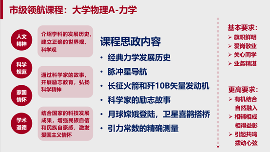 理工科课程同样孕育了大量的隐性的育人元素。以“大学物理A:力学”的课程思政建设为例,蒋最敏指出,课程思政建设与课程质量提升的内在目标是一致的,通过物理教学培养学生正确的世界观符合物理学科教育的特点,物理学专业教师应发挥这一优势,把对学生辩证唯物主义世界观的培养融汇到教学中去,注重培养学生的人文精神、家国情怀、科学规范、学术道德。