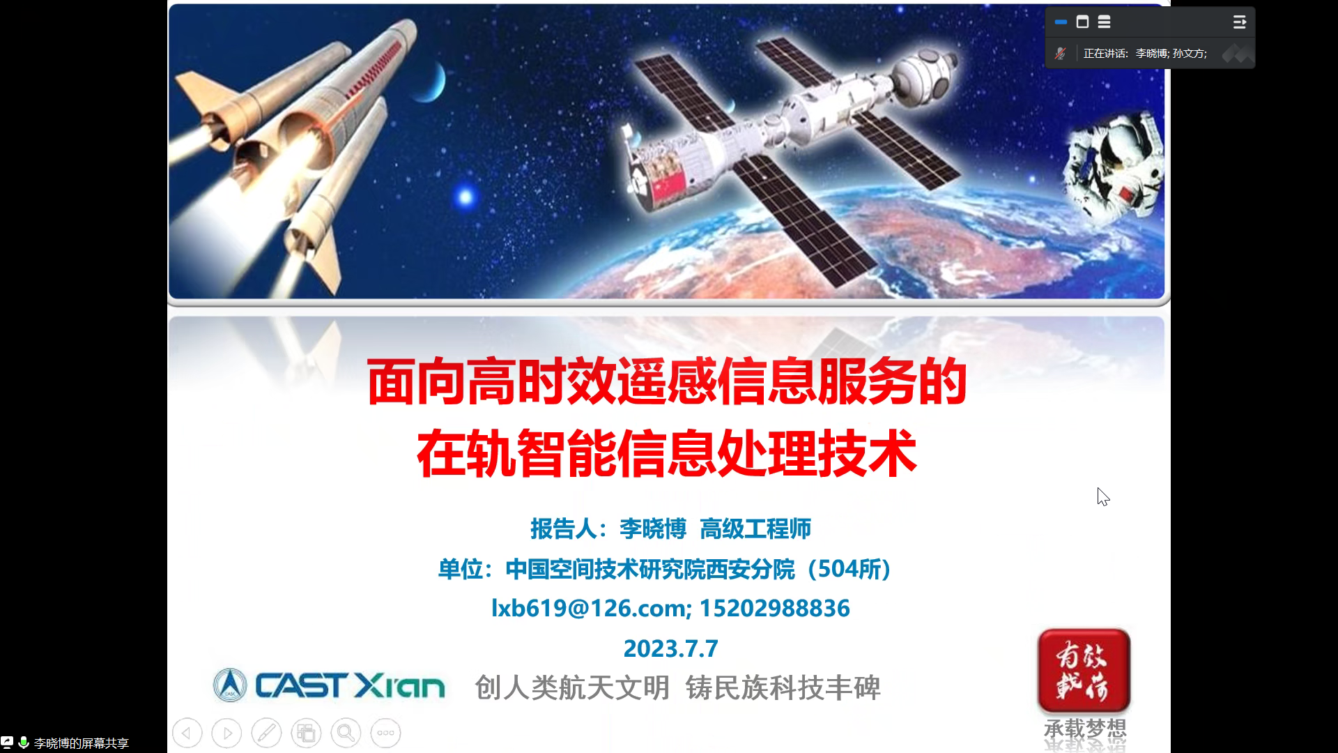 7月7日上午,西电空间科学与技术学院建院十周年系列学术活动第三期以线上形式成功举办,本次学术活动也是空间科学青年先锋论坛第十一期。论坛邀请北京信息科技大学何善宝研究员,中国空间技术研究院西安分院靳一研究员、李晓博高级工程师作专题报告。活动由学院实验中心党支部书记、主任孙文方副教授主持,部分教师代表、研究生百余人参加活动。