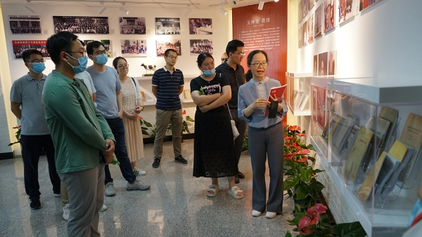 在动物科技学院四层吴仲贤教授塑像展区,陈列了吴仲贤教授工作、生活的珍贵图片资料和重要科学论著、中英文文学作品手稿等,动物科学技术学院俞英教授结合陈列实物,向老师们生动讲述了吴仲贤教授生平为创建和发展我国动物遗传育种学科及人才培养所做出的巨大贡献,以及他热爱祖国、严谨治学、潜心育人的动人故事。