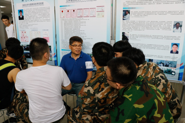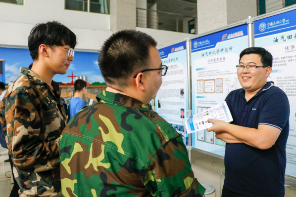 本次展览以学院五个研究所为单位,为各所研究团队设置宣传展板,导师通过与学生近距离交流,零距离传授学科前沿知识及团队研究现状。活动伊始,副院长苏玉亮首先介绍学院目前研究生培养情况,围绕优势学科与优势平台,鼓励学生结合自身兴趣进行专业深入研究,不断追求卓越。随后各位导师与学生自由交流,石工16班丁宇说道:“作为一名石工人,此次活动让我们对一流学科的具体内涵有了更深的了解,同时也帮助我们更好地了解学院各系研究方向,从而更有针对性地选择自己未来的发展方向,当然我们与导师们面对面,感觉更加心连心。”整场活动持续两个半小时,师生积极交流,气氛火热融洽,许多学生表示收获良多,并表示将与导师进行更深入的交流。