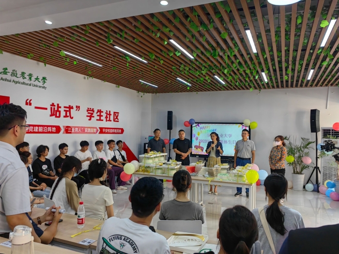 2023年9月6日是安徽农业大学2023级新生报到的日子,也是14名新生的18岁生日,学校在“一站式”学生社区为他们组织了集体生日会,通过简朴又隆重的仪式帮助新生尽快融入安农这个大家庭,这是今年以来学校“一站式”学生社区举办的第97场师生交流活动。