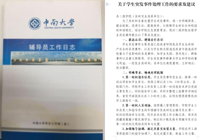 日常管理有机制。完善学生日常管理保障机制,严格落实学生晚归寝熄灯报告制度、学生外出请假审批报告制度等。严格落实台账制度和过程管理,认真记录好《二级学院学生安全稳定工作台账本》《辅导员工作日志》《班导师工作日志》等工作台帐,确保安全工作有迹可循、有据可查。落实重点学生关怀机制,及时掌握家庭变故、身患疾病、学业困难等学生的情况,加强关心关爱。