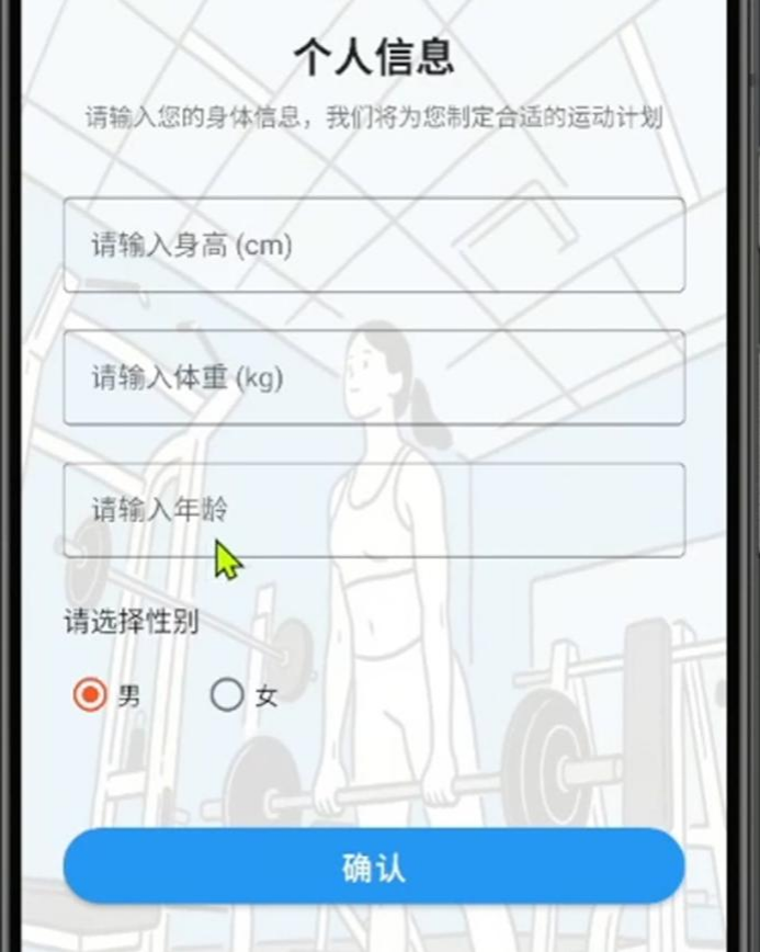 通过用户录入的姓名、性别、年龄、身高、体重等基础信息,系统基于体重指数(BMI)、代谢率估算、性别差异化建议等因素,为用户生成合理的具有个性化的运动目标、计划周期及运动建议类型。