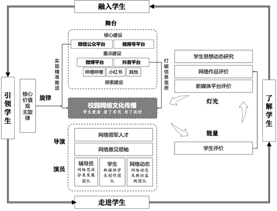 以“走进学生、了解学生、融入学生、引领学生”为路径,从平台、队伍、制度三个维度,强化资源协同,分层次开展实践探索,唱响网络育人的主旋律。