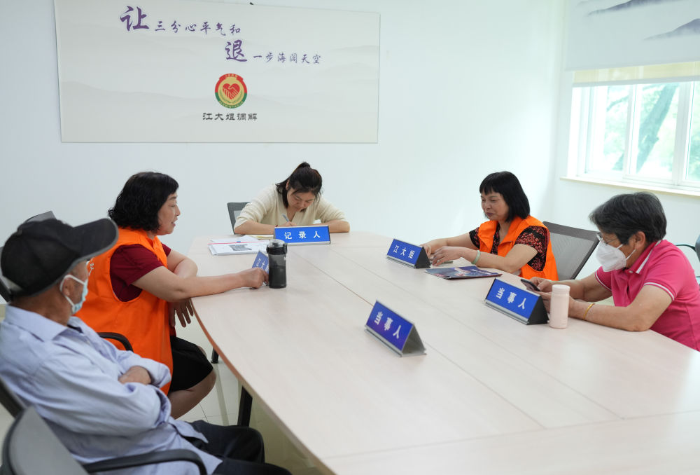 这个调解工作室成员主要由女性组成,为周边居民调解邻里、家庭矛盾(2023年5月26日摄)。