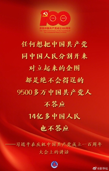 7月1日,庆祝中国共产党成立一百周年大会在北京隆重举行,习近平总书记出席并发表重要讲话。