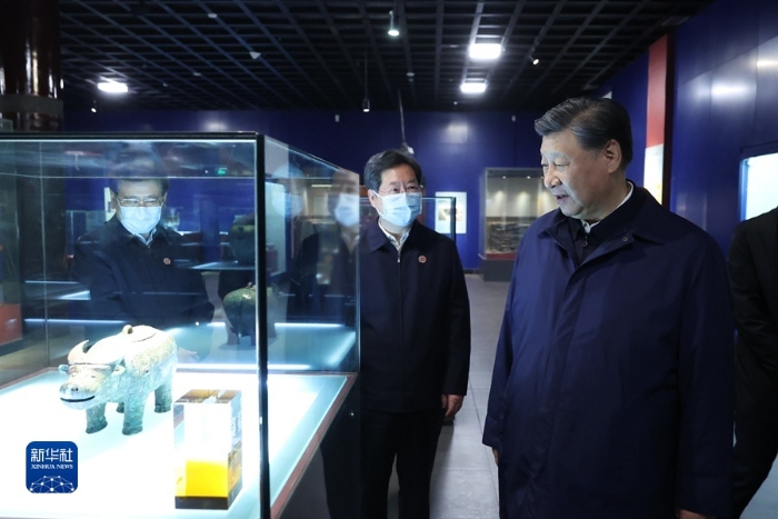 10月26日至28日,中共中央总书记、国家主席、中央军委主席习近平在陕西省延安市、河南省安阳市考察。这是28日下午,习近平在安阳市殷墟博物馆考察。 新华社记者 鞠鹏 摄