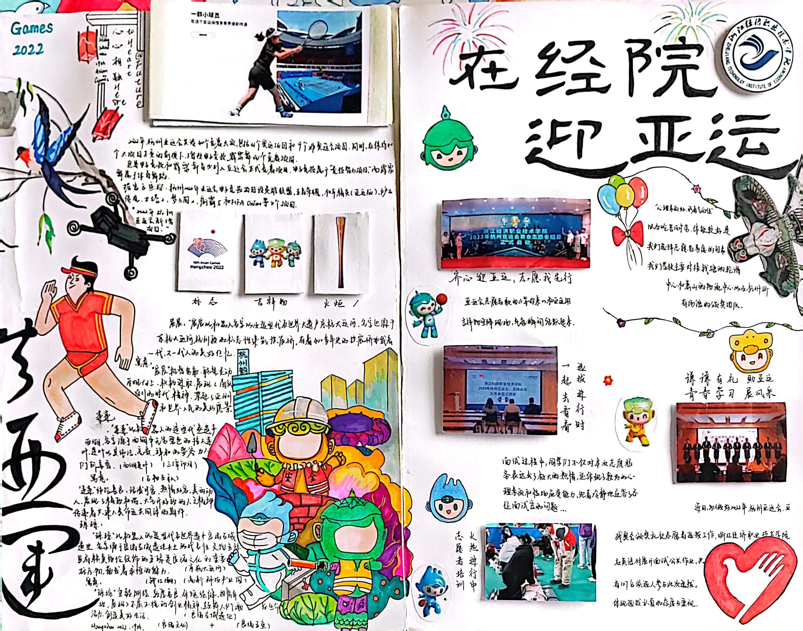 为庆祝党的二十大的胜利召开,实现第二个百年奋斗目标,实现中华民族伟大复兴的中国梦,牢记习近平总书记对浙江的殷殷嘱托,勇担历史使命、勇当探路先锋,与时俱进书写忠实践行“八八战略”新篇章,推动在高质量发展中实现浙江省“两个先行”,浙江经济职业技术学院马克思主义学院利用思想政治理论课实践教学组织2021级3000多名学生开展了一年一度的“三千学子同绘一幅画”思政课综合实践活动,同学们深入基层调研、交流访谈、通力合作,提交了一幅幅内涵丰富、创意十足、精心打磨的作品。为展示学校思想政治理论课实践教学成果,10月11日起,由马克思主义学院主办的“同盼亚运喜迎二十大,三千学子齐绘‘共富’画”思政课实践教学成果展在崇文行政楼一楼大厅举行。