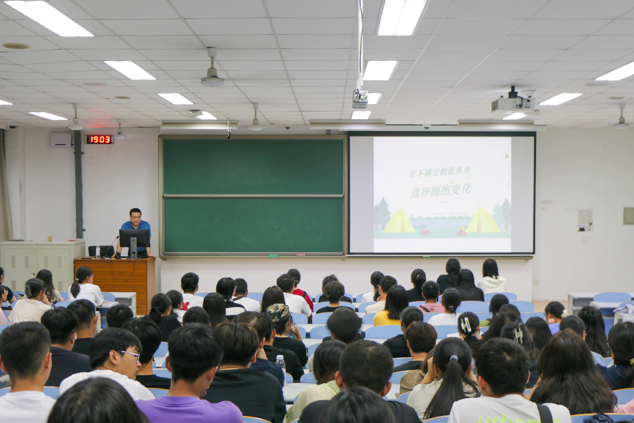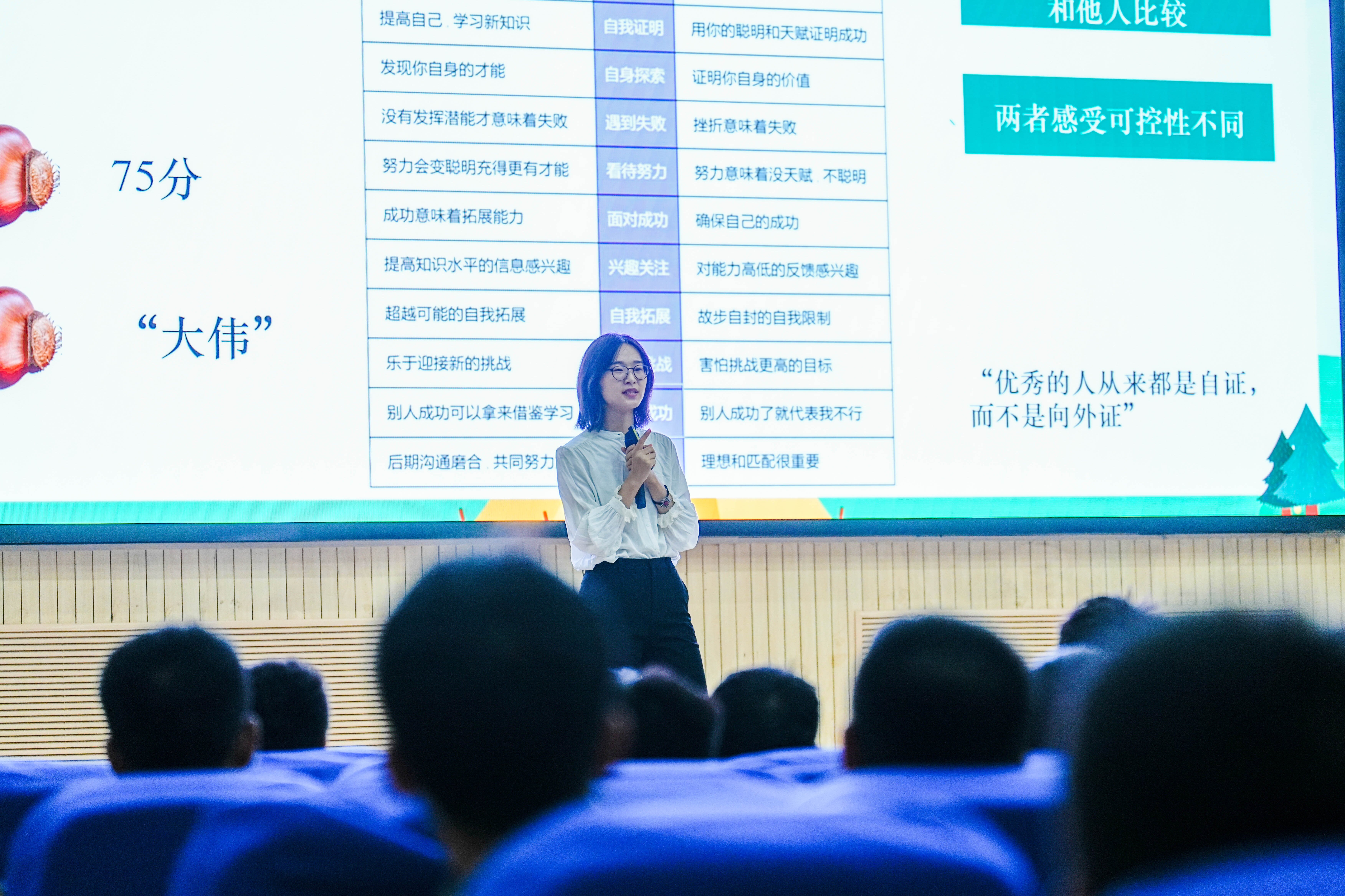 “大学生活是属于在座每位同学的,它远比你想象的还要精彩,请各位挖掘内部资源,发现自我闪光点,愿大家度过属于自己的独特人生”。心理中心教师徐铭雪真诚温柔的话语,浸润学生心灵,触发学生内心深处的共鸣,走进了学生心里。学生心理健康教育中心根据新生适应特点及心理变化规律从“大学面对的变化”“如何应对变化”“成长型思维的培养”“积极心态的建立”四个方面设计讲座,结合各院部实际情况与往年经典案例,挖掘学生实际需求,形成各院部的“VIP私人定制”讲座,针对性地帮助新生树立面对变化积极适应的理念,找到适合自己的方式方法,指导新生进行大学期间的适应与规划,明确大学发展目标,不断提升心理育人的有效性和专业性。