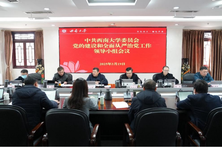 3月19日,西南大学党委召开党委常委会(扩大)会议暨学校党的建设和全面从严治党工作领导小组会议,学习传达中央党的建设工作领导小组会议、教育部党组会议精神和《中共中央办公厅关于在全党开展深入贯彻中央八项规定精神学习教育的通知》,审议通过《中共西南大学委员会关于开展深入贯彻中央八项规定精神学习教育的实施方案》,正式启动学校深入贯彻中央八项规定精神学习教育。党委书记张卫国主持会议并作动员部署讲话。