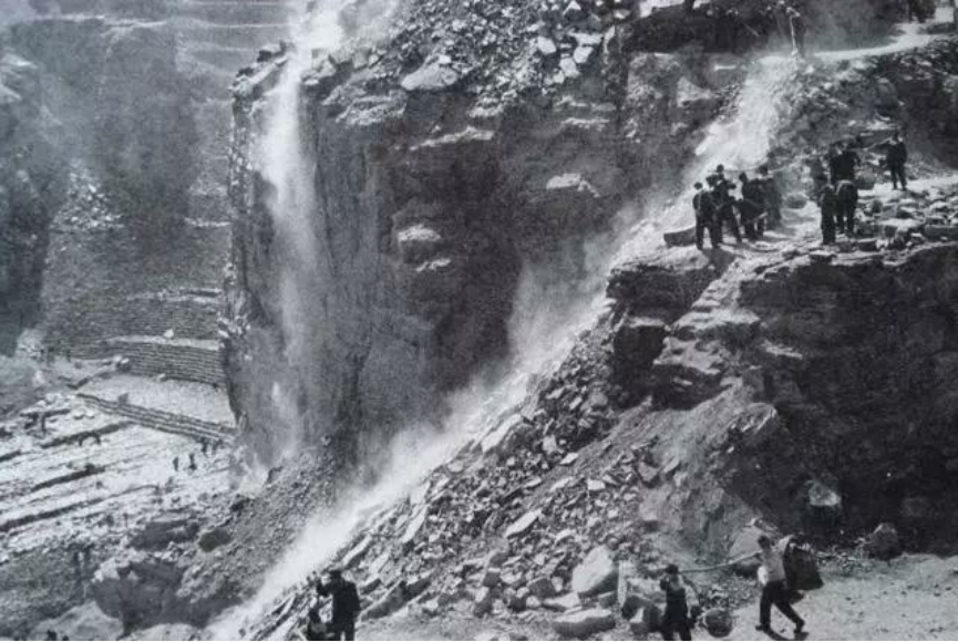 图一为千军万马战太行李根山是东姚镇老里沟村人,1945年出生,曾先后在村里担任团支书、民兵营长、村支部副书记、支部书记等职。当年,他曾是红旗渠工地上年龄最小的“民工连长”,多次受到总指挥长的表扬。图二为李根山带领民工修渠现场1964年4月,时任东姚公社老里沟大队党支部副书记、年仅19岁的李根山,带领老里沟大队30多名劳力,参加红旗渠第四期工程建设。