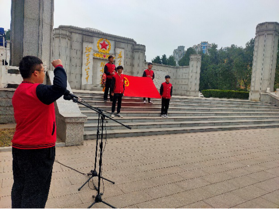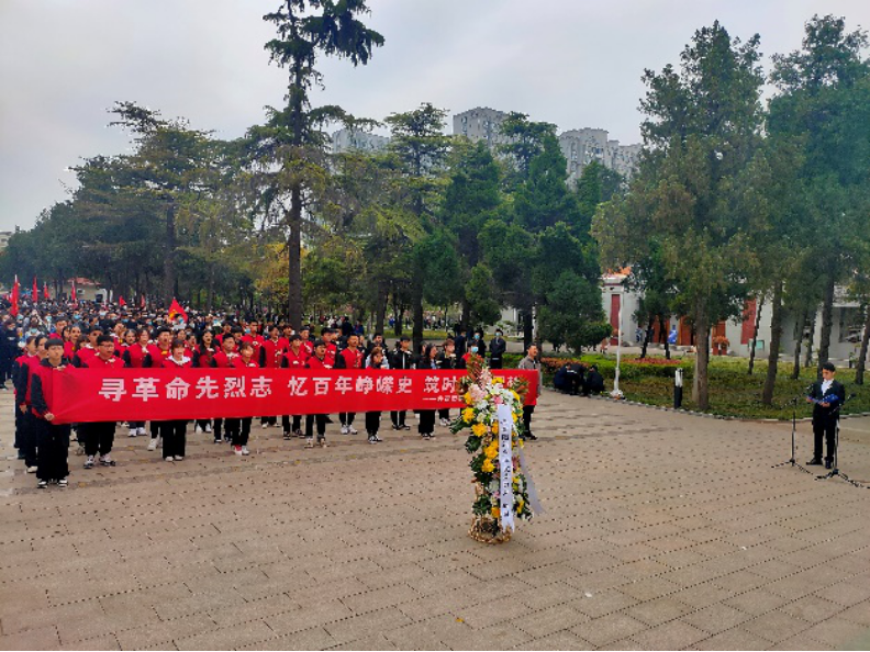 在庄严的国歌声中,全体学员在革命烈士纪念碑前鞠躬默哀,并向烈士敬献花篮。学员都健阳谈到,“今天的幸福生活是无数革命先烈抛头颅洒热血换来的,作为青年一代要坚定理想信念,厚植家国情怀,树立远大志向,听党话、感党恩、跟党走!”