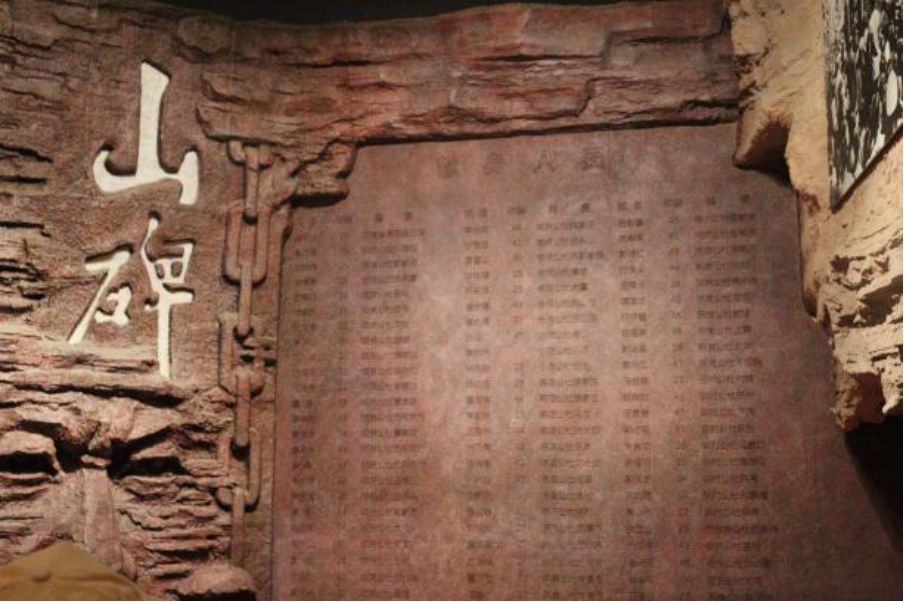 继续向前走,赫然屹立着两面石墙。一面墙上刻着当年开山修渠捐款出资的好心人士,另一面上则刻着在修渠工程中牺牲的林县人民。他们的名字静静躺在石墙上,被懂得感恩的林县人民永远铭记,被每一个走进纪念馆的游客瞻仰。走入纪念馆正厅,大屏幕上正在播放当年修渠的史实视频,实践小组成员置身历史,深刻感受到了红旗渠精神的召唤,在此庄严宣读了入团誓词,立志不忘青年使命,为实现民族复兴的伟大中国梦努力进取。