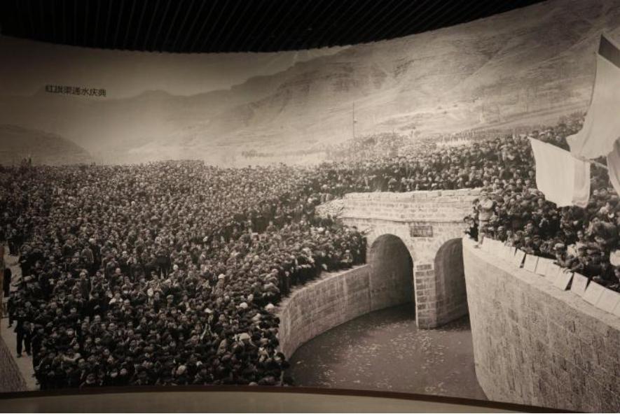 走进纪念馆内,随处可见当年修渠工人们开山架桥使用的工具,沉重的铁锤,麦秸编制的草帽,破损生锈的锅碗瓢盆······它们无声地讲述着当年修渠的艰辛:截断漳河,劈开太行,引漳入林。1960年,县政府动员全县10万民众,逢山凿洞,遇沟架桥,削平1250座山头,凿通211个隧洞,架设152座渡槽,终于在太行山的悬崖峭壁上建成全长一千五百多公里的大型引水灌溉工程红旗渠。
