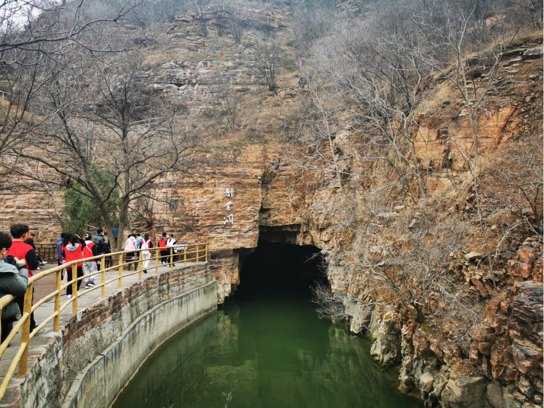 在实地参观过程中,学生们沿着依山而建的渠道参观了红旗渠工程建设中最艰难的咽喉地段——青年洞。