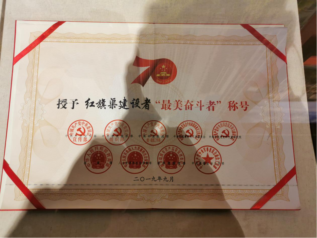 2019年9月红旗渠建设者被授予“最美奋斗者”称号