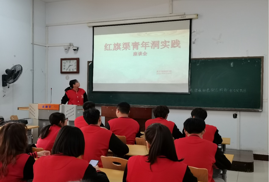 在后来开展的以“红旗渠青年洞”为主题的座谈会,团队成员也是将自己所学所感进行分享,成员分别以PPT或者照片等形式依次进行讲述自己实地考察和参观纪念馆中所了解到的关于红旗渠的故事及知识,表达自己的看法和见解。这是一个知识交流的过程,成员们将自己实践的结果向同学们阐述红旗渠精神,使团队成员在其他成员的感想与自己想法的结合下深入了解红旗渠文化的内涵,这是再一次进行红旗渠青年洞的历史与精神的研讨。