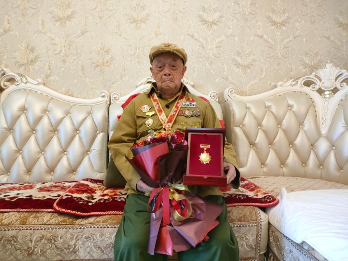 抗美援朝老兵蒋诚已经93岁了。记者采访他时,这位老人头戴着有五角星的旧军帽,穿着朴素的黄绿色军裤,腰板挺直,苍老的双手还能稳稳托住刚颁发给他的第八届全国道德模范奖章。