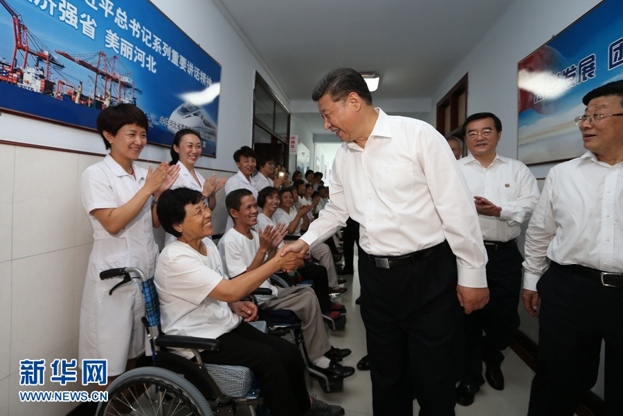 2016年7月28日,习近平在唐山市截瘫疗养院看望慰问截瘫伤员。 新华社记者 兰红光 摄