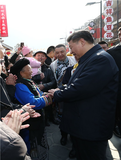 2018年2月12日上午,习近平在阿坝藏族羌族自治州汶川县映秀镇看望慰问群众。 新华社记者 鞠鹏 摄