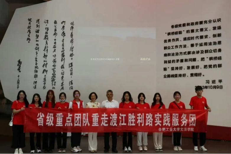 渡江胜利之路。1949年4月27日,华东野战军所辖渡江中路军、东路军两突击集团气吞万里如虎,加速东西对进,对国民党军残余势力形成合围,并在浙江吴兴胜利会师,渡江战役进入第二阶段。2022年7月,组建“重走渡江胜利路”实践服务团,从芜湖荻港“渡江第一船”出发,一路深入吴兴区织里镇和枫桥经验发轫地诸暨市枫桥镇等地。《探寻枫桥经验发轫,调研织里治理密码》《新时代青年“渡江精神”传承现状及对策研究》等获“中国青年网”全网展示,并获推荐参加“2022年全国大学生暑期实践展示”。