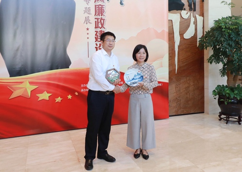 陈云纪念馆党委副书记、纪委书记王震凤与校党委副书记、纪委书记何鹏程代表馆校合作双方互相赠送了纪念品