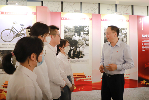 参观结束后,校党委书记许涛与育衡宣讲队同学进行了亲切交流,许书记了解到几位讲解员同学都来自马克思主义学院后,鼓励他们充分发挥专业优势,积极参与到校史馆、博物馆举办的各类理论宣讲活动中,在讲好展览的同时推动自身素质的全面发展。育衡宣讲队的同学们也表示:作为育衡宣讲队的一份子和马克思主义学院的研究生,要深入学习陈云同志关于党风廉政建设的相关理论知识,通过理论宣讲的方式在校园内大力宣扬廉洁奉公、崇廉拒腐的社会风尚,为营造风清气正的校园文化贡献青年力量!
