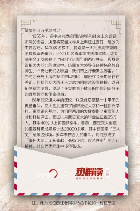 会见中,习近平谈起教授们两年多前写给他的一封信。这封信讲述了一大批师生教工“甘洒青春为家国”的感人故事。