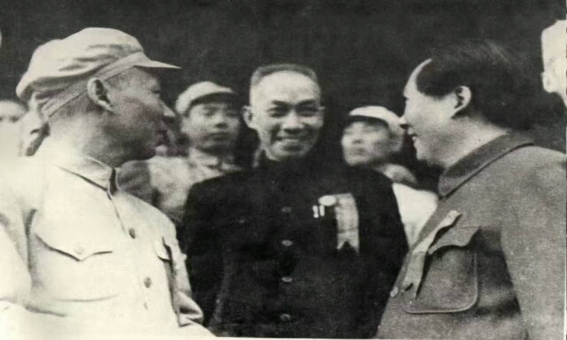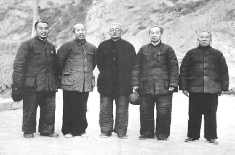 1944年,毛泽东和朱德,李鼎铭,吴玉章,徐特立,任费弼