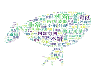 在收集到商品的评论并进行中文分词等一系列预处理操作后,则可以京东logo为背景生成词云,本次实例中机箱评论的词云如图3所示。