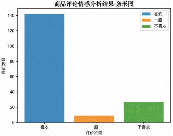 在对每一条商品评论进行情感分析评分后,按照第四章中的评论分类表将评论分析为三类,并对其进行统计与可视化处理。可视化生成的直方图如图5所示。