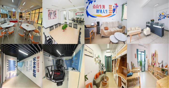 全面升级学生社区线下物理空间育人场域,打造总面积近4300平方米的辅导员工作室、多功能活动室、“药大青年之家”团学工作室近60间,配备心灵驿站、美育讲堂、职业规划工作室、网络直播间、安全体验馆、健身室等功能性空间,努力满足学生的学习生活需要,为开展“社区里”的思想政治教育、日常管理服务提供了软硬件保障。