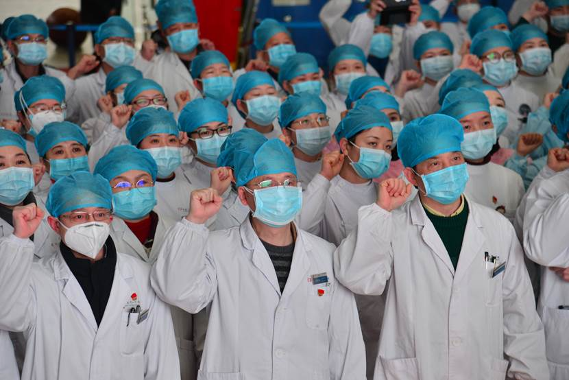 “我志愿加入中国共产党,拥护党的纲领,遵循党的章程……随时准备为党和人民牺牲一切,永不叛党。”3月10日,一场特殊的宣誓仪式在医院举行,杨勇、曹理言、丁宁、刘群4位同志通过视频连线面向党旗庄严宣誓,光荣的加入中国共产党。23日,在武汉金银潭医院,龙勇、张雯和李晓三位同志经火线考察、批准,成为在抗疫最前线加入组织的新鲜血液。