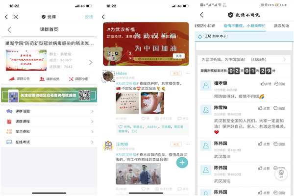推进平台互动,增强战“疫”实效。面向师生开展一系列接地气的活动,用大家喜闻乐见、易于参与的方式做好疫情防范和应对工作。一是借助易班优课平台开展“防范新型冠状病毒感染的肺炎知识问答”活动,推出两天就吸引5000余名师生参与答题;二是在大学圈建立“为武汉祈福,为中国加油”话题圈,道美好祝愿,诉坚定信念;三是开展“疫情不用慌,小易来帮忙”等活动,通过分享“心理健康指导手册”“新型肺炎确诊患者同行程查询工具”等内容,疏解焦虑情绪,提高防疫技能。