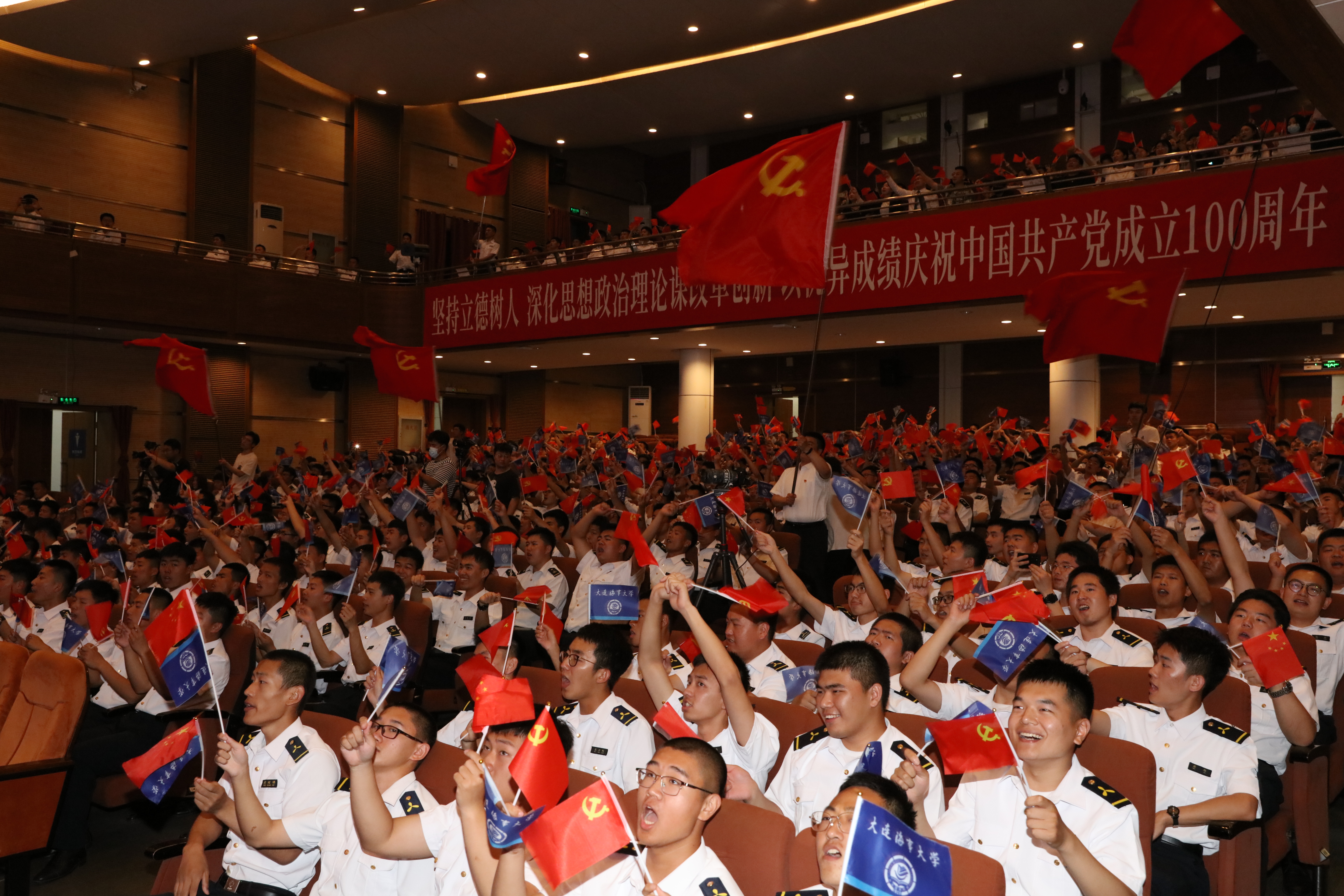 雄壮激昂的歌声响彻大连海事大学礼堂,辉煌百年——庆祝中国共产党成立100周年“激情大课堂”正在这里上演。这是大连海大深化思想政治理论课改革与党建工作的创新,将党史学习教育推向高潮,为中国共产党成立100周年献礼的一堂特别的思政课。