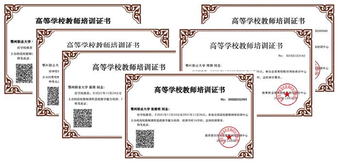 为深入实施《高等学校课程思政建设指导纲要》,提升高校教师的课程思政教学能力,全面推进课程思政高质量建设,全面落实立德树人的根本任务。我支部党员教师积极参加了由全国高校教师网络培训中心于2021年11月24-26日举办的高校教师课程思政教学能力培训并获得结业证书。