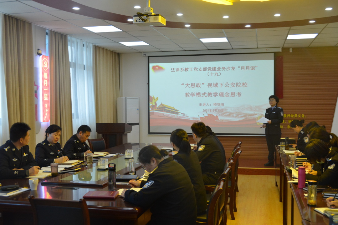 针对新时期如何开创思政育人新模式,支部党员教师纷纷踊跃发言,表示要充分利用新媒体平台,使教学形式多样化,同时紧密结合网络、社会上的热点话题,整合公安工作相关资源,深入挖掘与思想政治教育的契合点,把人民警察对党忠诚、服务人民、执法公正、纪律严明的要求与公安专业教育紧密结合起来,不断开创课程思政工作新局面。