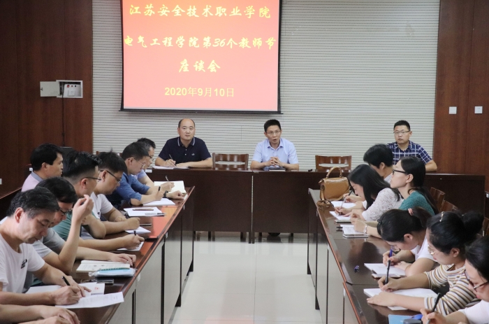 为庆祝第36个教师节,9月10日,电气工程学院分别在贾汪校区309会议室和云龙校区601室召开教师座谈会。校领导吴如根副院长出席贾汪校区会议。电气工程学院主任王郝、副主任吕猛、副主任丁建俊及全体教职工参加会议。