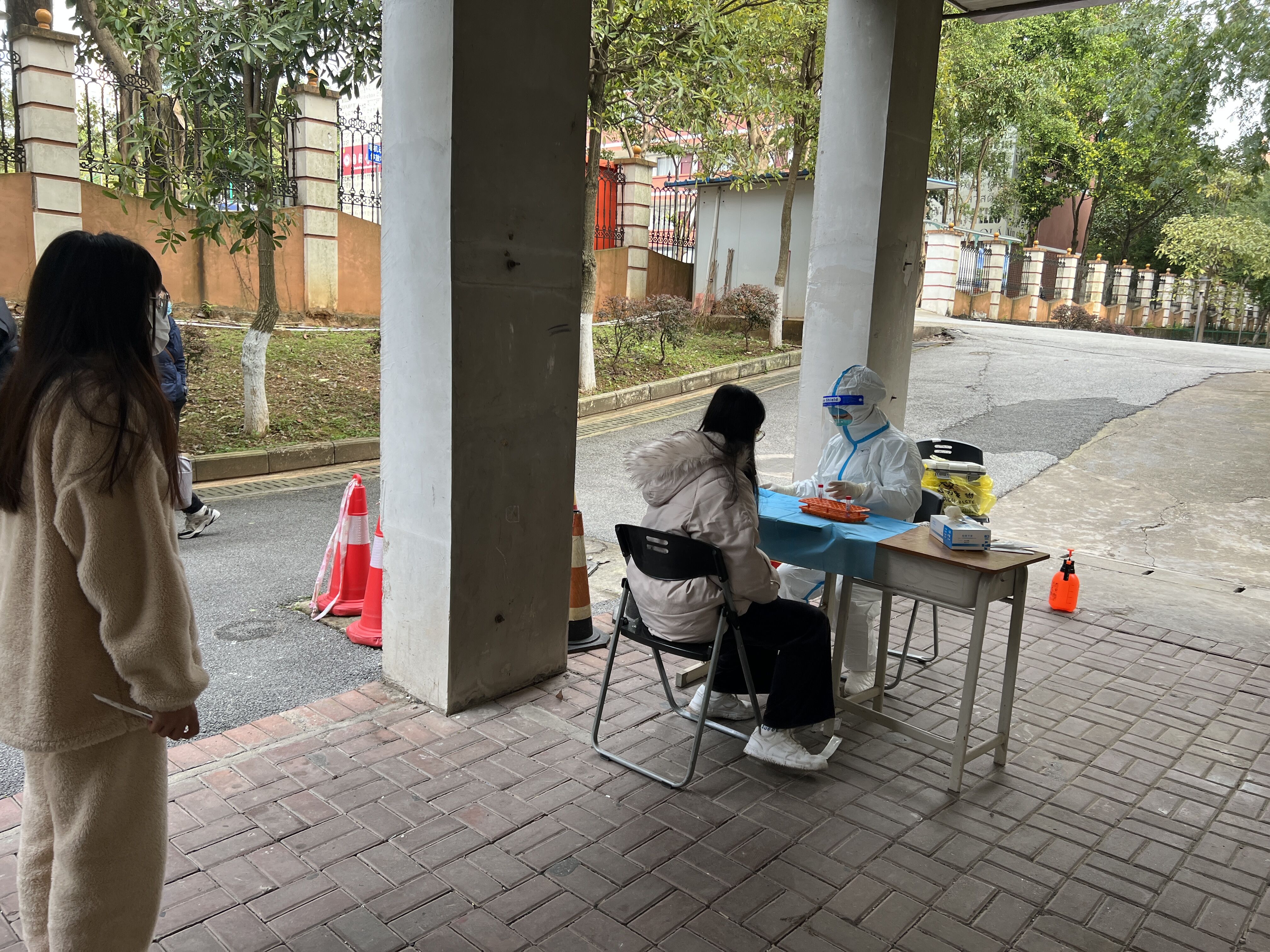 学生工作处党支部组织返校重点学生进行核酸检测现场(孙雅婧/摄)