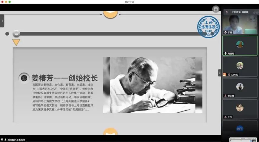 2021年6月27日,上海外国语大学英语学院研究生第七党支部与北京大学工学院创新菁英党支部联合开展以“学习百年党史,重温红色文物,汲取奋进力量”为主题的支部共建活动。支部党员共同学习人民日报发布的中国共产党百年述职报告,回顾了党的百年风雨历程,重温了与上海和上外息息相关的红色文物,例如陈望道翻译的《共产党宣言》中文初版、陈独秀在上海创办的《青年杂志》(后更名为《新青年》)等。双方支部同学分别分享了上外、北大优秀青年共产党员的先进事迹。在学习百年党史、重温红色文物、学习身边榜样的过程中,双方支部党员都进一步加深了对北京和上海这两座城市“红色精神”的理解,也促进了对双方学校“红色基因”的了解,联络了同志情谊。这些红色文物和先进党员背后的精神将不断激励着双方支部的党员同志们铭记历史、坚定理想、牢记初心、砥砺前行!