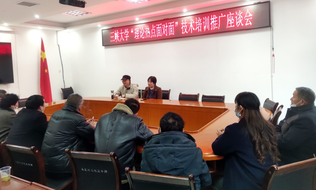 生物与制药学院雷生姣教授、李涛教授与当地种植户促膝座谈,认真听取了村民的困惑与需求,针对茶叶、柑橘的选种、培土、移栽、施肥、除草等给出了建议,并商讨后期精准服务指导的工作机制,获得了百姓的认可。