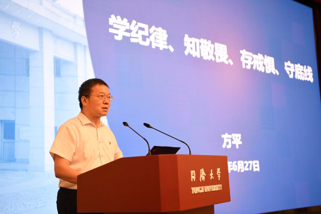 为深入学习贯彻习近平总书记关于全面加强党的纪律建设的重要论述,引导教育全校党员干部学纪、知纪、明纪、守纪,推动党纪学习教育走深走实,同济大学于6月27日召开党纪学习教育警示教育会。会议通报了教育系统和本校违纪违法典型案例和学校近期纪律审查工作情况,要求全校党员干部以案为戒、以案明纪,切实把遵规守纪内化为思想自觉和行动自觉。校党委书记方守恩主持会议并讲话,校党委副书记、纪委书记、监察专员方平作警示教育报告。