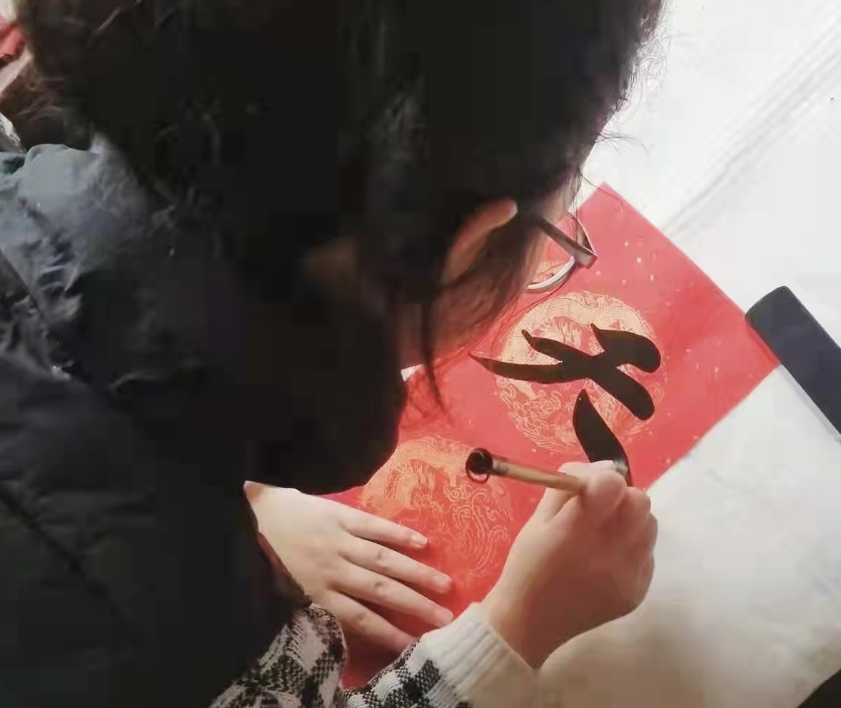 春联,又叫“春贴”、“门对”、“对联”,它以对仗工整、简洁精巧的文字描绘美好形象,抒发美好愿望,是中国特有的文学形式。红红的春联表达了人们对新年新岁的美好向往和祝愿。书法专业的尹文浩同学积极发挥专业特长,挥毫泼墨,一幅平安和谐、吉祥如意的春联,带着挥别牛年、喜迎虎年的祝福,为即将来临的春节增添了浓浓的喜庆氛围。一张张鲜艳的红纸在陈珂同学的手上跳动,一幅幅生动传神的剪纸作品随之诞生。小小的剪纸,剪出了盎然春意,也剪出了对新生活的幸福感和获得感。同学们将春联和剪纸赠送到空巢老人、困难老人家中,提前为他们带来节日的问候。