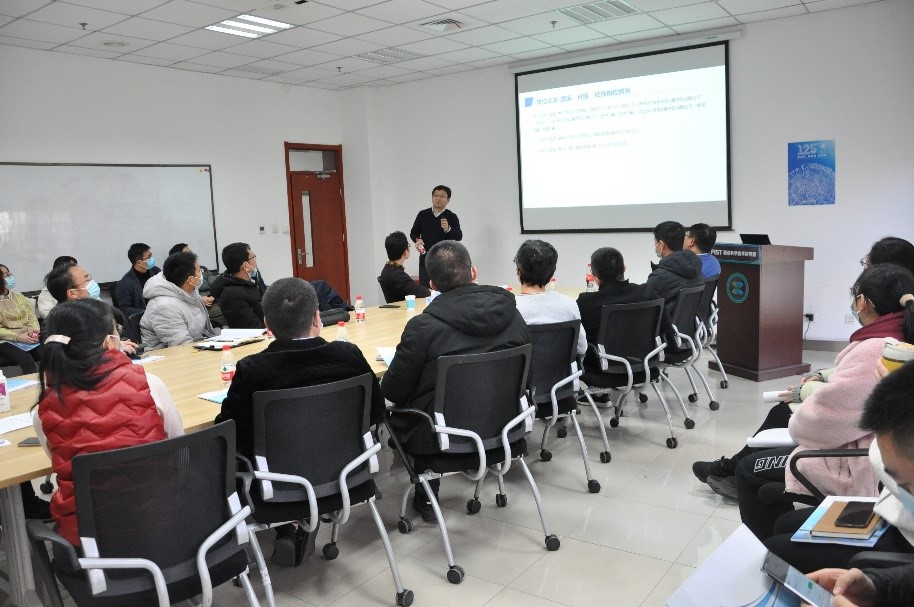 11月30日下午,前沿院研究生指导教师培训会在曲江校区举办。本次培训旨在细化落实导师立德树人工作职责,提升前沿院研究生教育工作水平。培训会邀请研究生院副院长刘明作专题报告,研究生院学位办副主任徐渭、前沿院全体教师参会。前沿院邵永平教授主持培训会。
