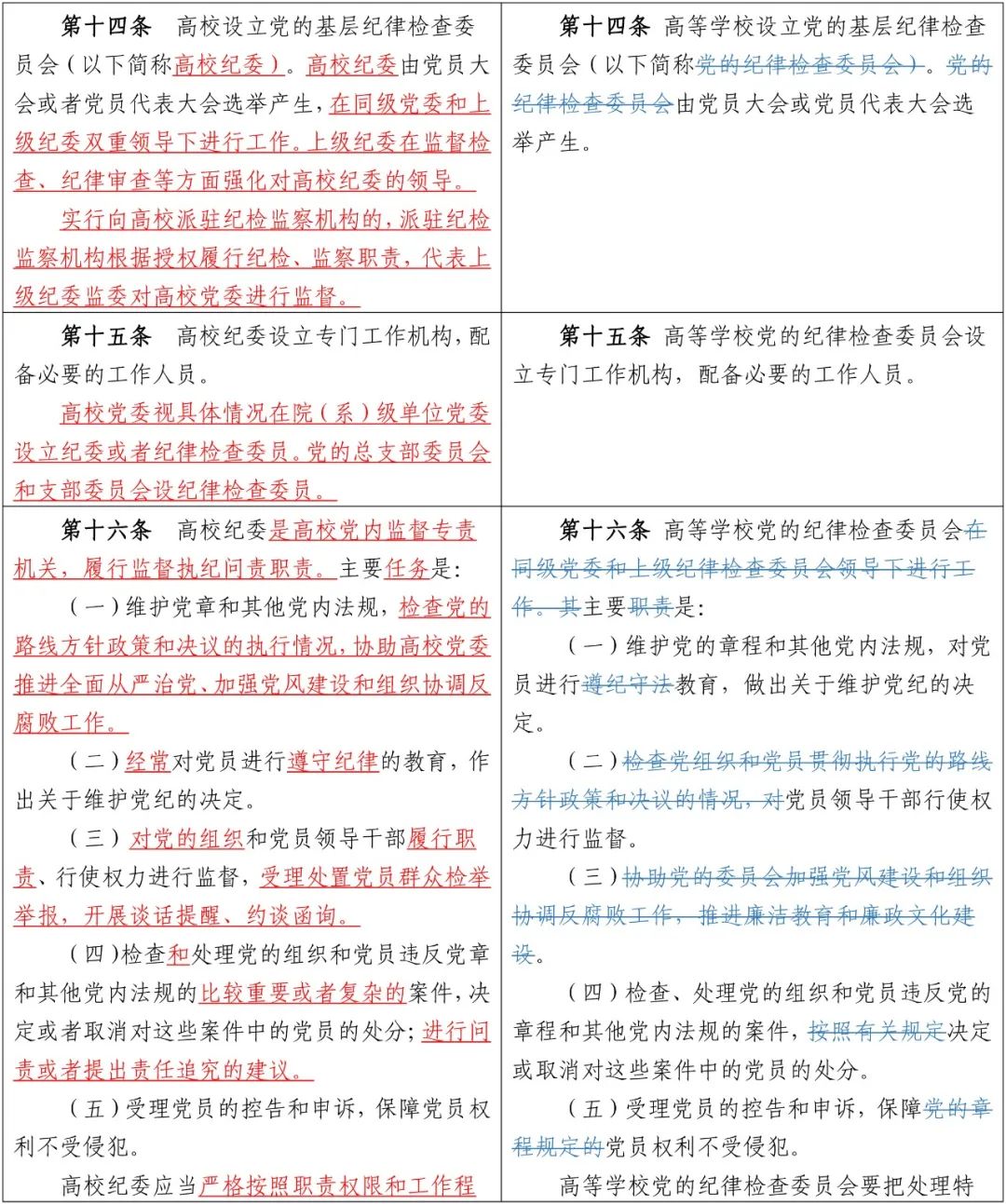 第十四条 高校设立党的基层纪律检查委员会(以下简称高校纪委)。高校纪委由党员大会或者党员代表大会选举产生,在同级党委和上级纪委双重领导下进行工作。上级纪委在监督检查、纪律审查等方面强化对高校纪委的领导。