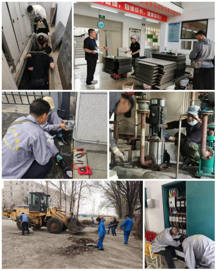 为了更好地服务学校师生,学校专门成立了后勤服务中心,保洁员按时对校园公区进行保洁服务,维修师傅每天对校园的生活设施进行维修和维护,做到“冬保暖夏保凉,及时维修抓保障”。