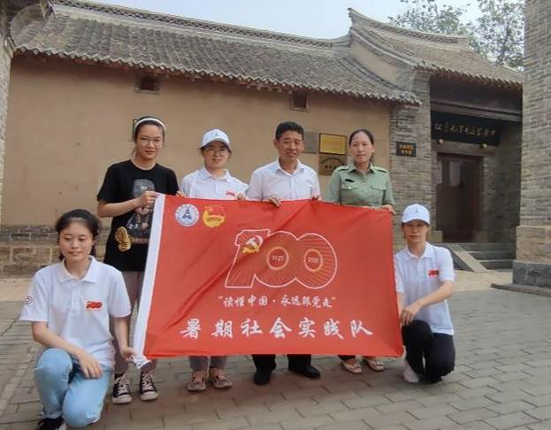 图1:2021年7月2日,董研会暑期社会实践队与中原军区司令部旧址负责人、讲解员合影留念