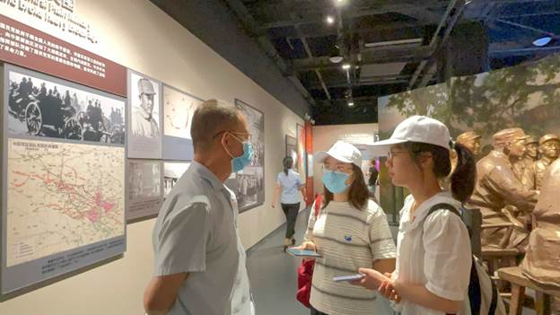 图6:2021年7月3日,董研会暑期社会实践队于中原解放纪念馆同参观人员交流