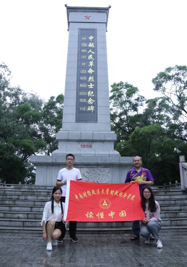 雨纷纷,烈士魂。到达防城港市的第二天,蒙蒙细雨中,“双基地”建设广西分队首先来到位于中越界河北仑河附近的中越人民友谊纪念公园,缅怀革命先烈。“青山有幸埋忠骨,何须马革裹尸还”,队员们缓步绕行纪念碑以示悼念。纪念碑左侧,还矗立着一座防城县第一个中国共产党支部的纪念碑。中共防城县第一任党支部书记钟竹筠同志在大革命时期积极领导革命运动,后被敌人秘密逮捕,在狱中坚贞不屈,最后在北部湾刑场英勇就义,年仅26岁。师生在痛惜与哀悼之后,表示难忘烈士英魂,要传承红色精神